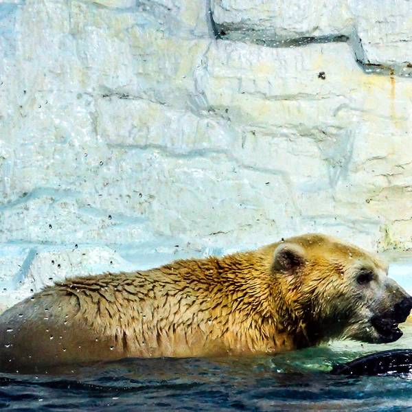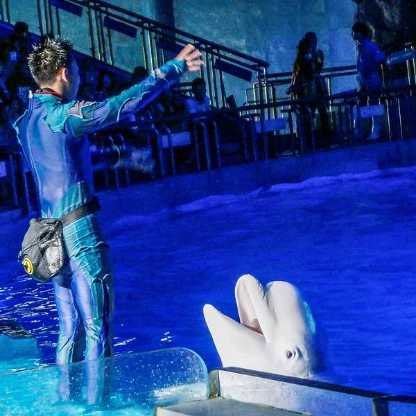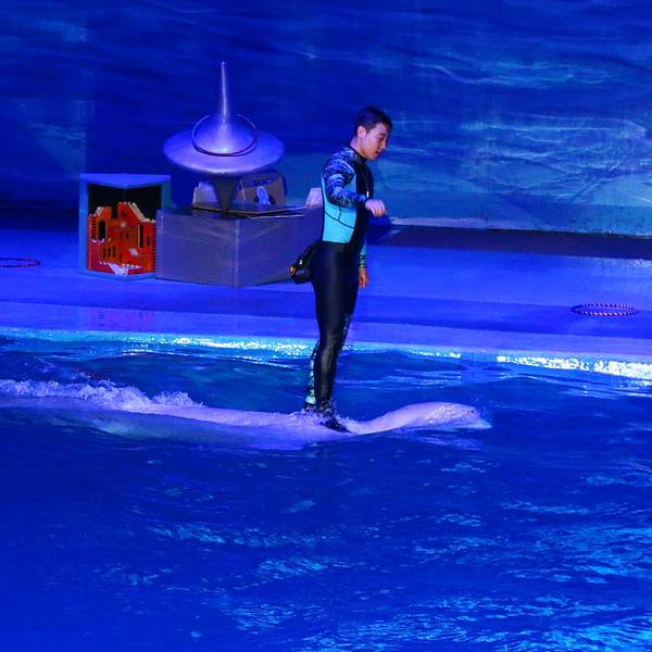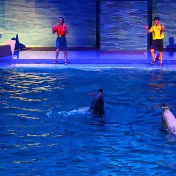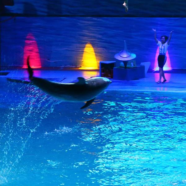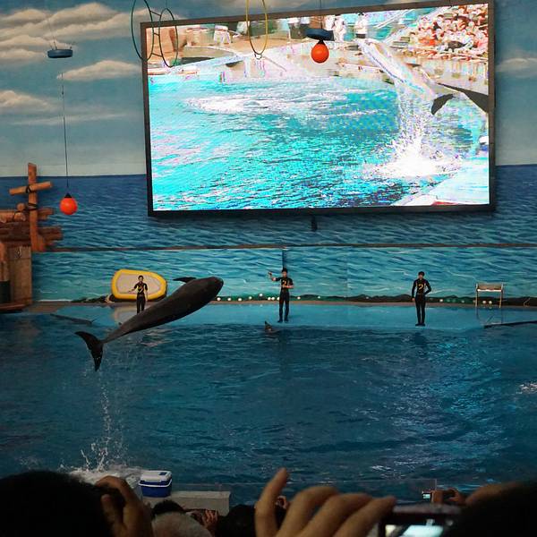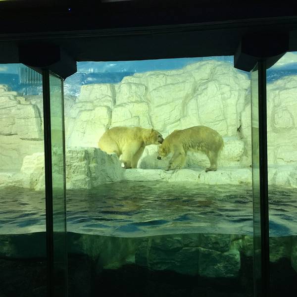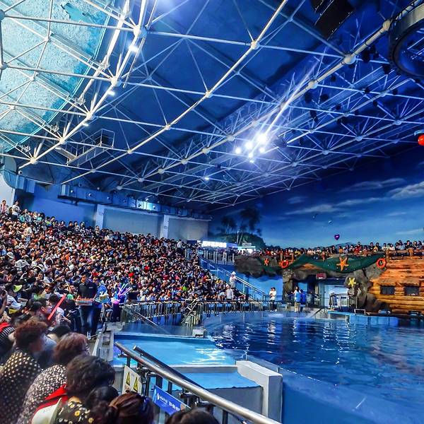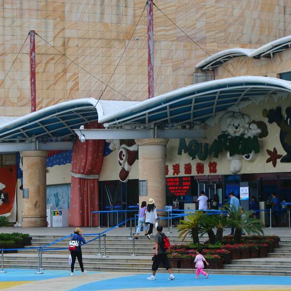 老虎滩极地海洋动物馆位于老虎滩海洋公园内北侧,进入园区后向东南方步行约100米即可抵达。