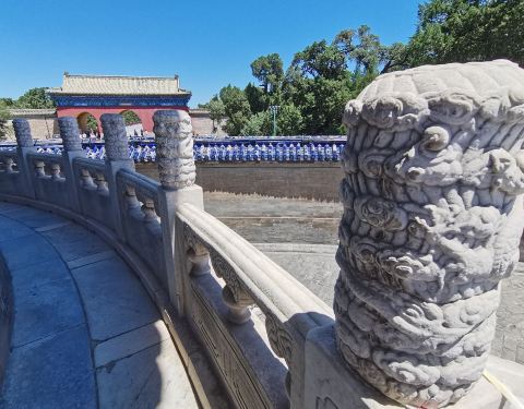 殿外就是著名的回音壁、三音石和对话石。是游客来天坛的必游之处皇穹宇在圜丘坛以北,是供奉圜丘坛祭祀神位的场所,存放祭祀神牌的处所。殿外就是著名的回音壁、三音石和对话石。是游客来天坛的必游之处!