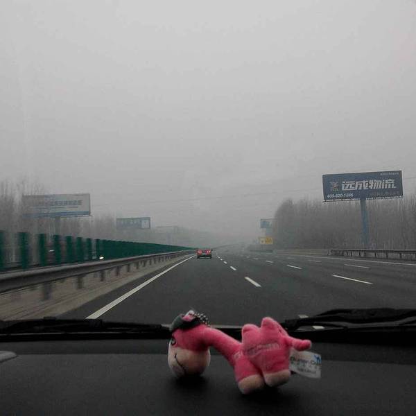 大雾天,我们行驶在京津高速上~还好,有小骆驼期待的眼神,再恶劣的天气也不能阻止我们一家幸福的旅程!