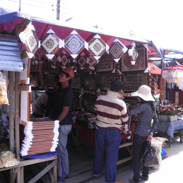 靠近印尼加里曼丹边境市集,除了当地商品也可以找到来自印尼的小玩意。