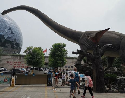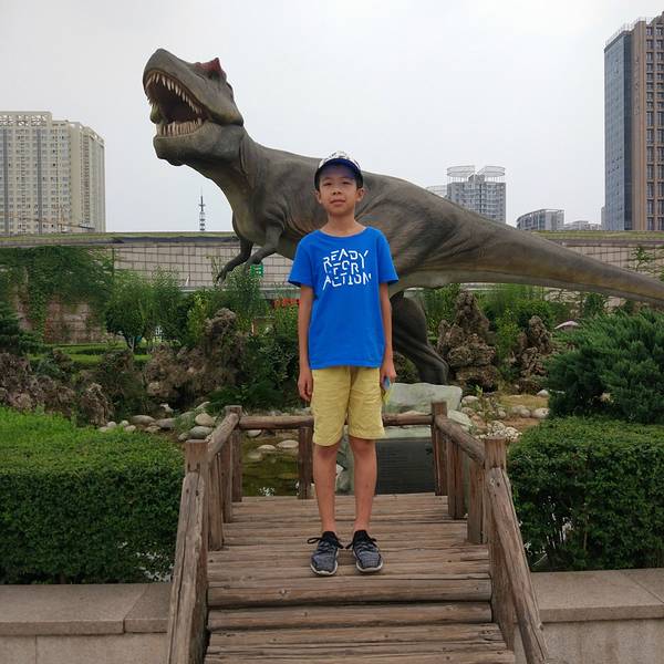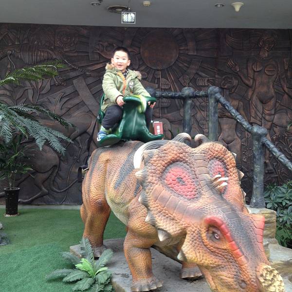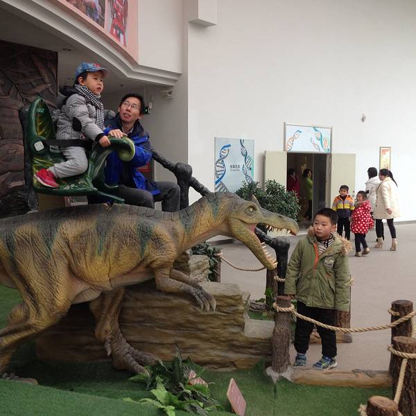 小O激动得要命,我们赶紧下车,原来,这里是陕西自然博物馆……这个地方在我看到的攻略中都没有发现过,有很多西安本地的市民带孩子前往,看来应该是个不错的去处……一进门就有电动恐龙可以坐哎,可惜人太多了……