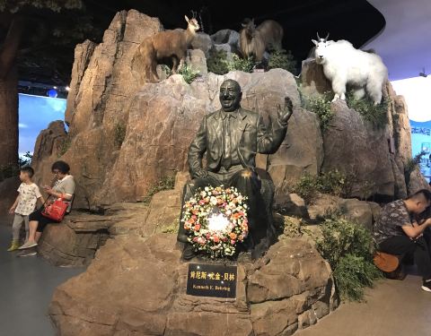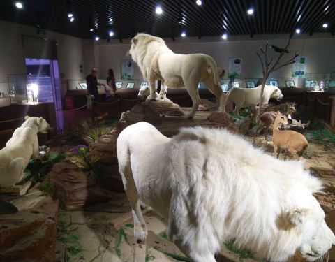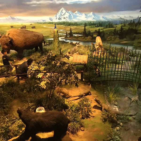 自然馆在最里面,按照规则,应该是最不错的一个馆吧,哈哈,一路上有很多恐龙雕塑,门口有很多动物标本,还有活的,正式的大门,就是上面这个霸王龙了,有声音,还会动哦……小伙子又玩了半天……这里的动物标本超级多,超级逼真~额,其实,本来就是真的……展现了很多动物的捕食场景,大人都很喜欢……