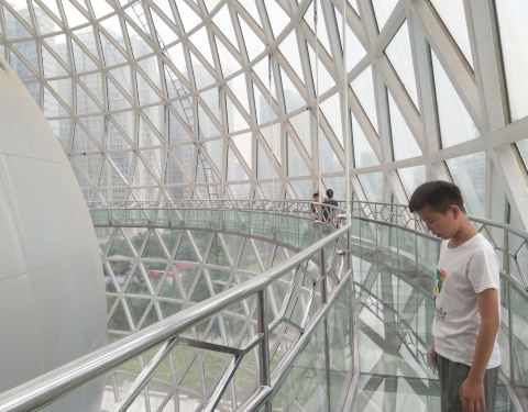 从小寨乘地铁前往陕西自然博物馆。在博物馆门口喂鱼自然馆门口聚精会神试一试