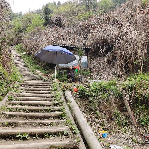 前往木梨硔的山路坡度很陡,却没有护栏,圆木制成的木栈道略显简陋。在山上生活确实辛苦,木梨硔的山民们每天都要背负重物往返多次。