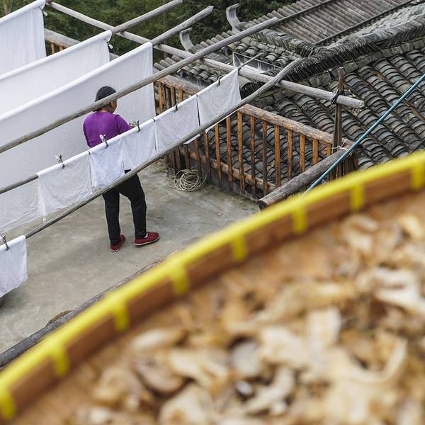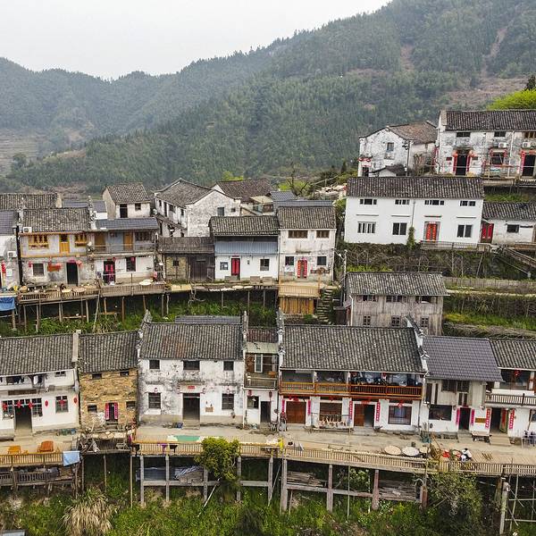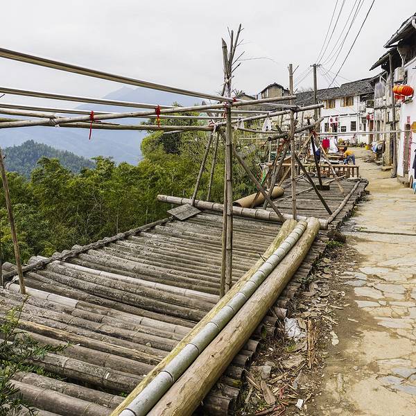 由于地处山脊,木梨硔先民把一根根圆木吊下悬崖,在半空中开辟了一片空地,这就是独具木梨硔特色的“晒台”前往木梨硔的山路坡度很陡,却没有护栏,圆木制成的木栈道略显简陋。在山上生活确实辛苦,木梨硔的山民们每天都要背负重物往返多次。20多分钟后,山路慢慢变得平坦,穿过一片茂密的竹林,耳边的鸡鸣声提醒着你,...前往木梨硔的山路坡度很陡,却没有护栏,圆木制成的木栈道略显简陋。在山上生活确实辛苦,木梨硔的山民们每天都要背负重物往返多次。20多分钟后,山路慢慢变得平坦,穿过一片茂密的竹林,耳边的鸡鸣声提醒着你,木梨硔终于到了。山顶上,几十户房屋依山势而建,紧紧地挨着。为了避风,木梨硔的先民们舍弃了传统徽派房顶,选择了减少风阻的两面排瓦。由于地处山脊,木梨硔先民把一根根圆木吊下悬崖,在半空中开辟了一片空地,这就是独具木梨硔特色的“晒台”。恰恰是这些“晒台”,让人暂时忘却了脚下的危险。