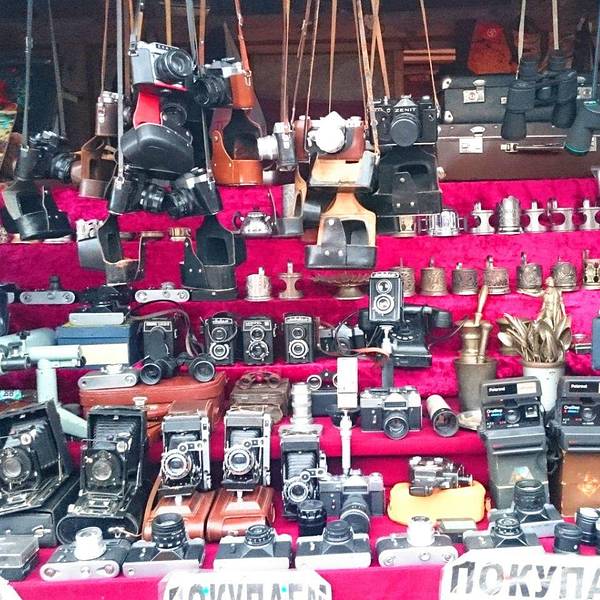 ↓先在门口照张相↓不行,两张不行,脱了大衣接着照。里面卖的最多就是套娃,我对套娃不感兴趣啊。我看有人说这是买套娃最便宜的地方了。喜欢套娃的来这里淘吧↓还有卖老相机的。我记得要使劲往里面走,周末有跳蚤市场。在这里听到了一段对话。“支付宝可以吗?微信转账行不行?”店主一脸懵逼