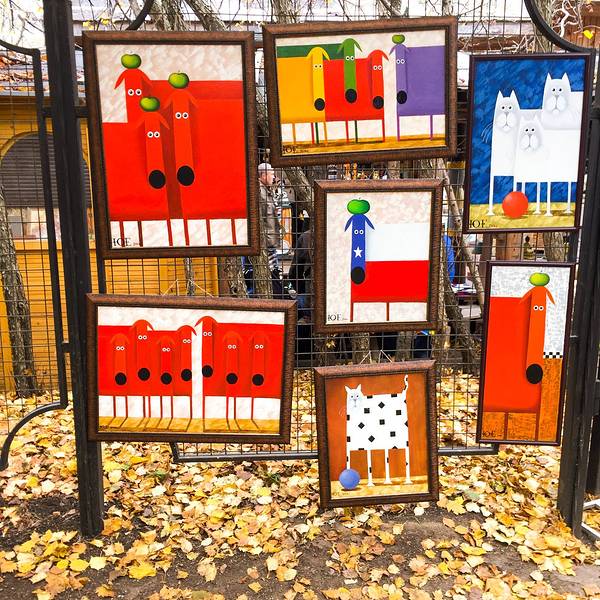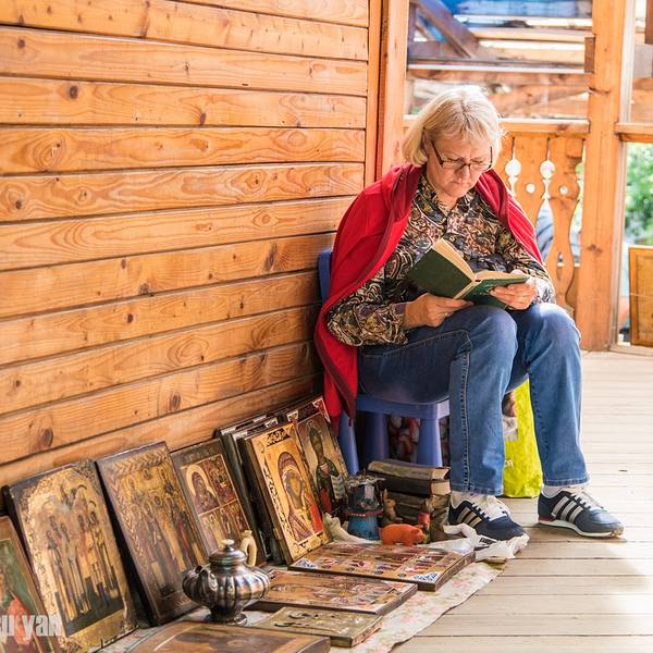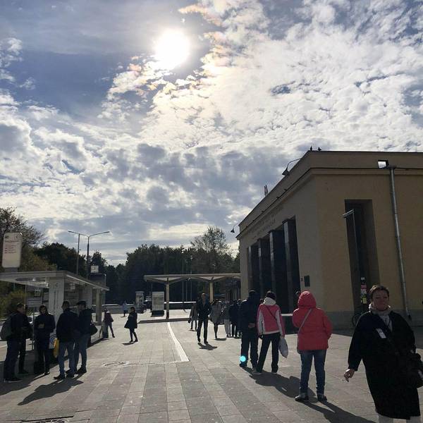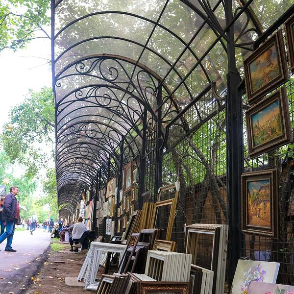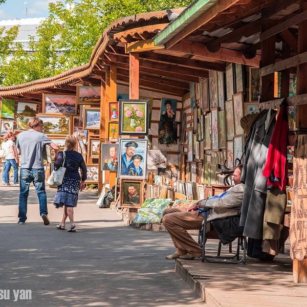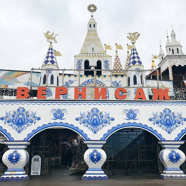 在地铁3号线到游击队员站,出地铁站后往左手边走,看到一个木制拱门,上写ВЕРНИСАЖ字样,很快就能看到市场的标志建筑群。不过我们却闹了个小乌龙,挨着的两个站名太相似,不小心坐过了一站。下来发现四周有些荒凉,问了便利店的俄罗斯大妈,霸气的挥手让我们往前直走。不放心的走了五六分钟后看着还不像样,便问了几个年轻人。结果这位大哥上来就说“Can you speak English?”我们心想总算碰到个会说英语的俄国人了,结果接下来他叽里咕噜说了一大堆我们听不懂的俄语,看着一脸懵逼的我们,笃定的下了个总结“Five station,metro!”我只好表面上点头道谢,心里想着这条路可更不靠谱。最后终于在公园里等来了一对溜金毛的小情侣,男生腼腆地问我们是不是来自中国,寒暄了几句后表示自己也指不上,还是让女朋友告诉我们吧。这才知道原来是多坐了一站。在俄罗斯的问路指路实在是个靠运气的活儿呀!