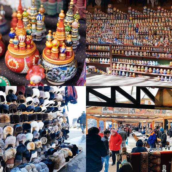 该市场其实名为Вернисаж,经过数次整顿,并最终形成了如今的模样。在这座规...克里姆林宫的游览比预计的要快很多,提前赶到位于莫斯科东北角的伊斯梅洛沃市场。因其读音近似而被华人广泛称为“一只蚂蚁”。
