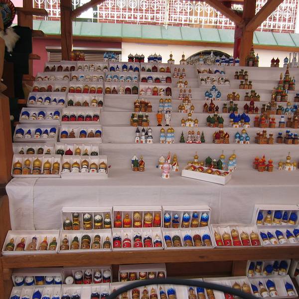 伊兹麦洛夫市场:因为在俄语发音中与一只蚂蚁极为相似,因此被戏称为一只蚂蚁的跳蚤市场。这里的练摊者以老人居多,从潜水的器材到废弃的电器、玻璃器皿、化妆品等等,五花八门什么都有。在跳蚤市场还可以看见旧...伊兹麦洛夫市场:因为在俄语发音中与一只蚂蚁极为相似,因此被戏称为一只蚂蚁的跳蚤市场。这里的练摊者以老人居多,从潜水的器材到废弃的电器、玻璃器皿、化妆品等等,五花八门什么都有。在跳蚤市场还可以看见旧邮票、精致的工艺装饰品、琥珀饰品、毛批肩、玛瑙石、绘有艺术图案的木制首饰盒和化妆盒等等。跳蚤市场里一直映入眼帘的俄罗斯套娃是俄罗斯特产的木制玩具。一般由多个一样图案的空心木娃娃一个套一个组成,一般在六个以上,是俄罗斯民间艺术的象征。传说千年前,一个小男孩在放羊的时候走失了可爱的小妹。由于他非常想念妹妹,就刻了一个木娃,每天带在身上。过了几年,他想妹妹应该长大了一些,于是又刻了一个木娃娃。一直过了几十年,身边一直都还带着自己刻的木头娃娃,一个套着一个,思念侵袭的时候打开来看。