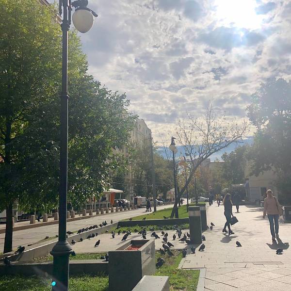 市场上看到最多的还是最出名的俄罗斯套娃,色彩艳丽,款式也是多的琳琅满目。走到尽头还可以看到一处露天市场,里头摆满了油画、版画和各式工艺品,满地金黄落叶与画中的场景十分相衬。回到市区酒店把采购的战利品放下,便马不停蹄地出门吃下午茶啦。沿着小路穿过老阿尔巴特街,不时会有令人惊喜的新发现。中东餐馆、诱人的点心店、迷你小教堂。。。