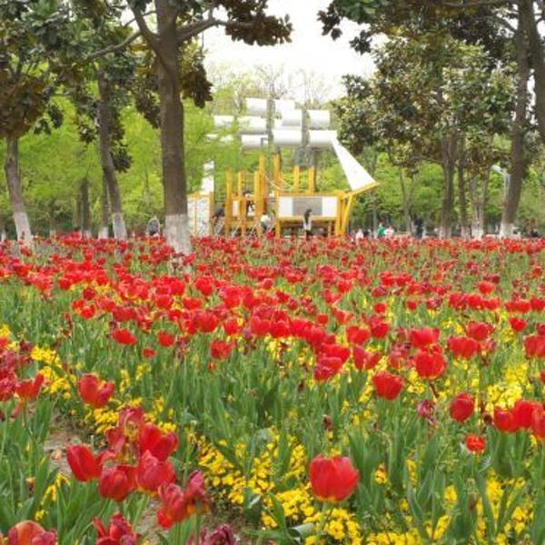 很大的一个公园,有很多体育活动场地,儿子最喜欢的是那里的彩虹滑梯,我是经常去游泳池游泳,不过现在还没有开。因为地方大,人比较分散,不会显得拥挤,可以租自行车转转。现在是赏花的好季节,游船也开放了,...