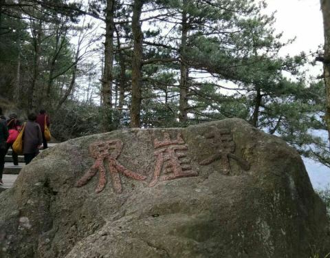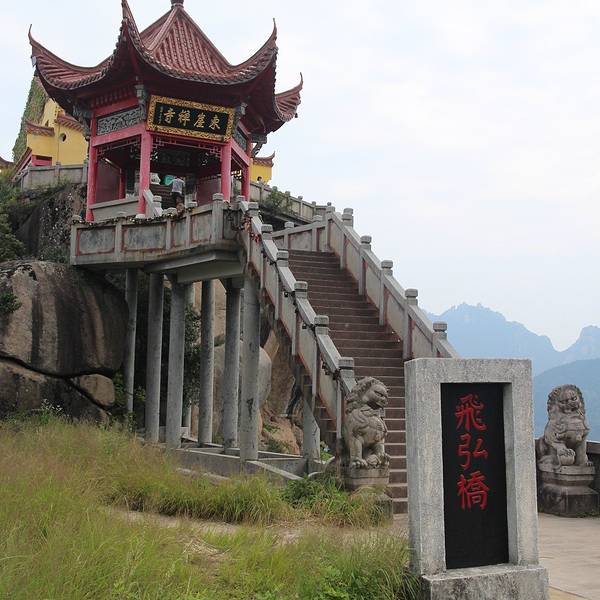 殿南悬崖建有”飞弘桥”,中有六角亭,一桥连接大殿与悬崖,”天堑变通途”。地图的路线标识很清楚- 从百岁宫经过地缆站,继续前行,此处山路的石头高高低低,没有百宫那段的平整。可能午后起风了,凉冽的山风穿过茂密的山林,一阵阵地吹刮而来。小伙伴们边走边聊,不到二十分钟,就来到东崖禅寺。寺院下边的黄房...- 从百岁宫经过地缆站,继续前行,此处山路的石头高高低低,没有百宫那段的平整。可能午后起风了,凉冽的山风穿过茂密的山林,一阵阵地吹刮而来。小伙伴们边走边聊,不到二十分钟,就来到东崖禅寺。寺院下边的黄房子均被建筑施工栅栏围着,应该是正在翻修吧。东崖脊顶,巨石方正,其形如舫,故有“东崖云舫”之称。明时在脊顶建寺,万历年间名“东崖精舍”,民国初建5层走马通楼,安单接众,遂为十方丛林。