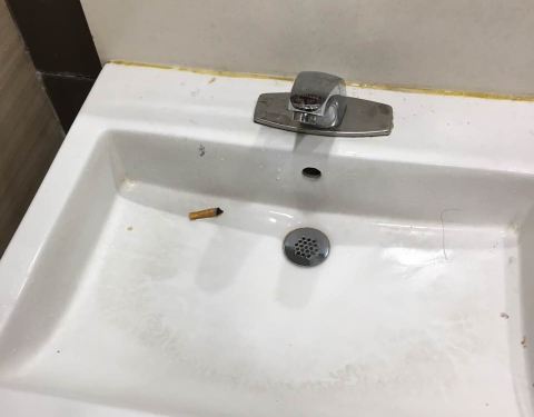 洗手池太脏。还有烟头在池子里。