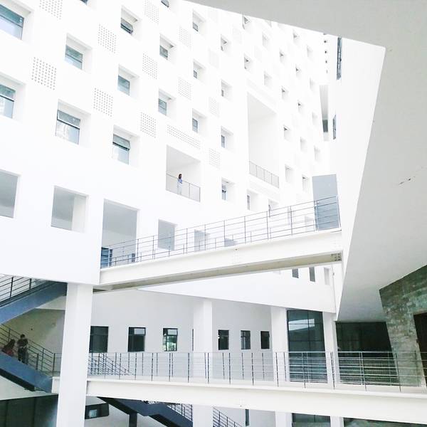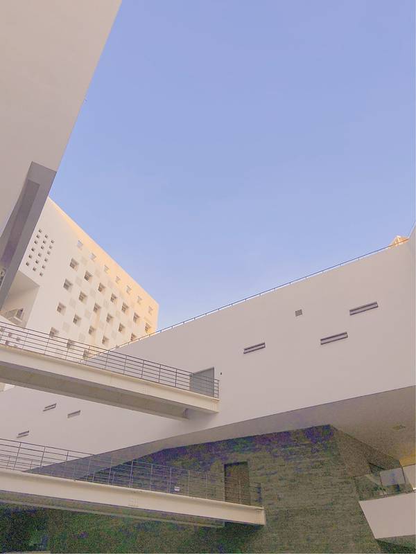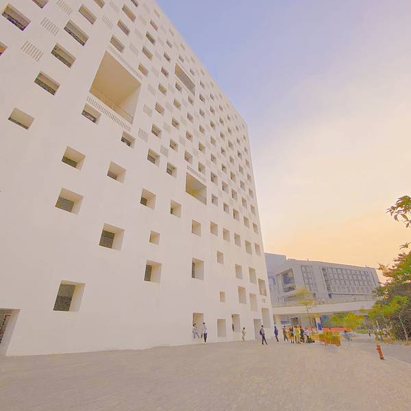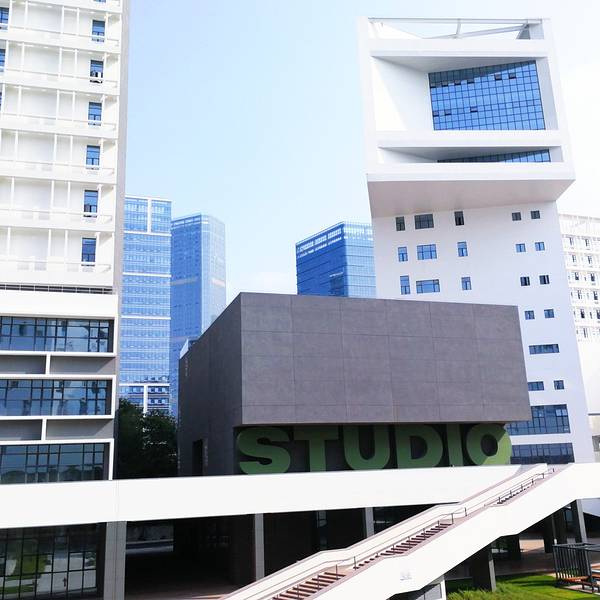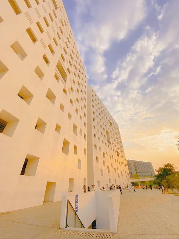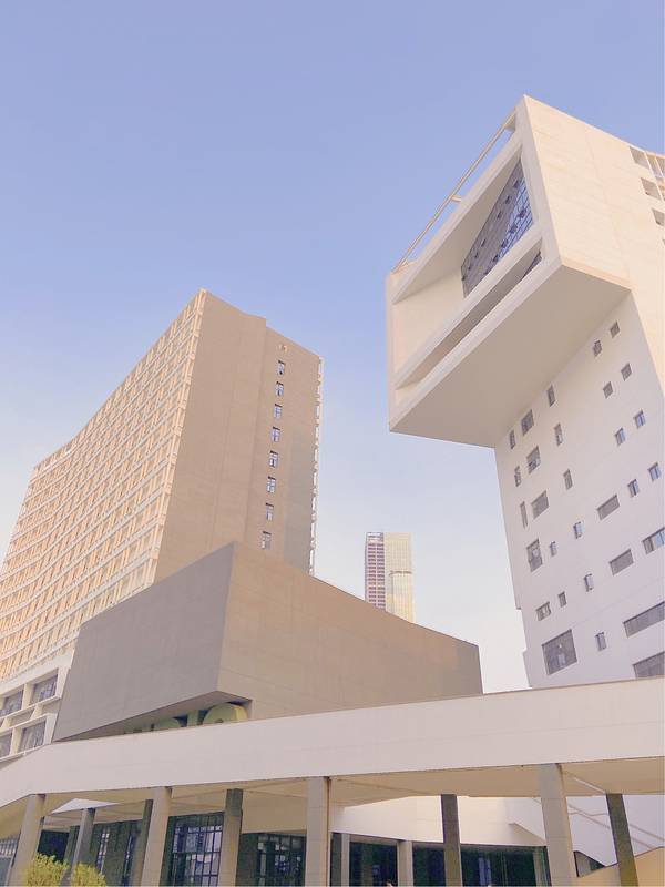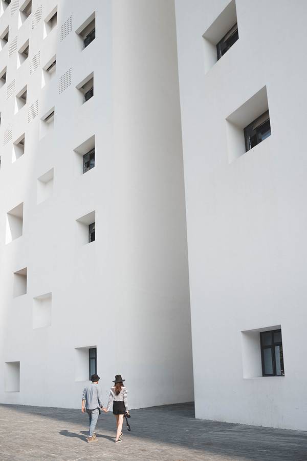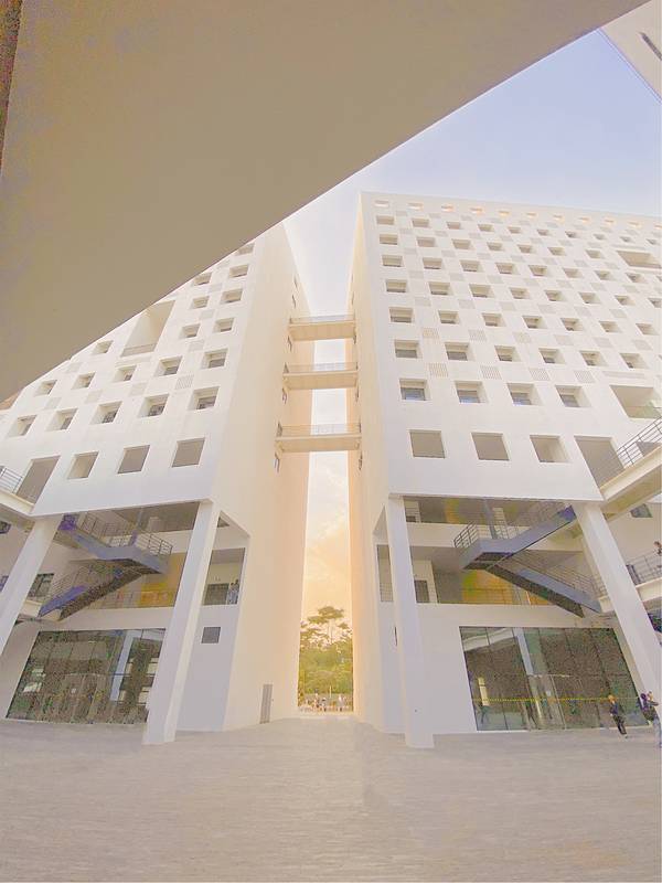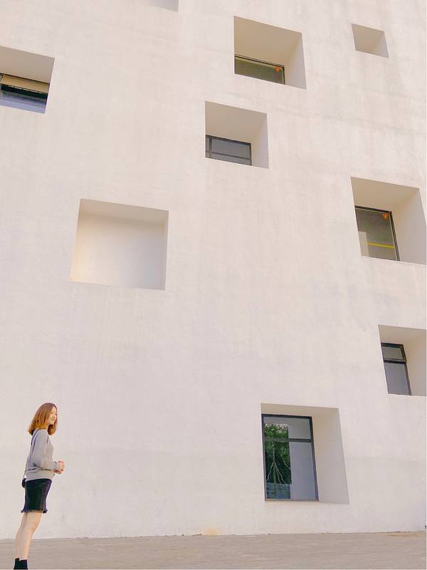 网红打卡建筑是学校的传艺大楼,超有设计感,很适合拍ins和性冷淡风,随手拍就很有感觉~