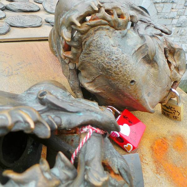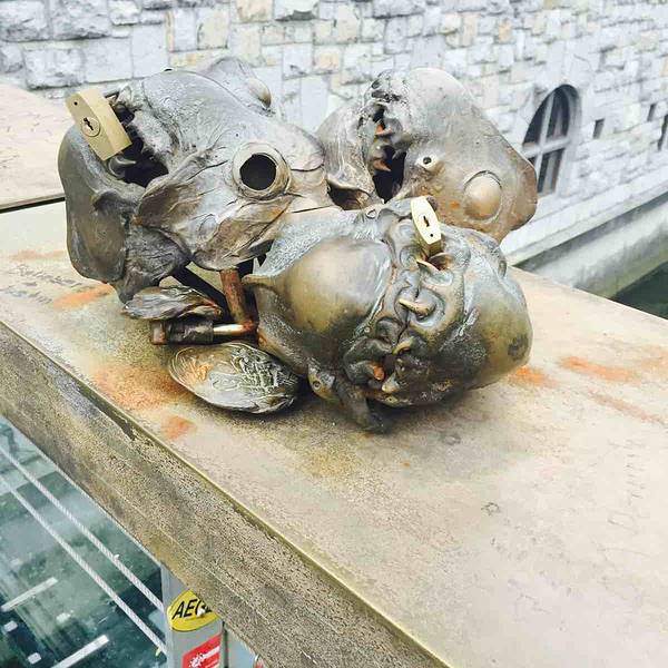 屠夫桥:刚走上去看到满是锁的屠夫桥,以为这是一座锁桥,因为欧洲多地都有锁桥。根本不明白为什么在锁边上还会有那么些奇怪的小雕塑。 【景点中文名】屠夫桥 【景点英文名】Butchers' Bridge 【景点地址】Petkov...