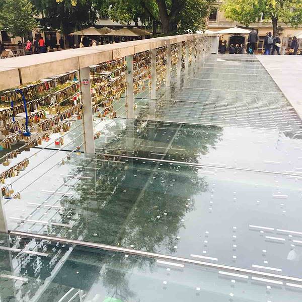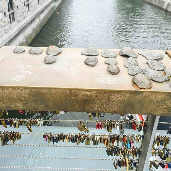 屠夫桥:刚走上去看到满是锁的屠夫桥,以为这是一座锁桥,因为欧洲多地都有锁桥。根本不明白为什么在锁边上还会有那么些奇怪的小雕塑。 【景点中文名】屠夫桥 【景点英文名】Butchers' Bridge 【景点地址】Petkovskovo nabrezje,Ljubljana,Slovenia 【景点地理位置】屠夫桥就位于卢布尔雅那城堡山脚下,中央市场边上。在景区中心。 【景点交通方式】直接步行即可。桥并不长。 【景点周边】屠夫桥边上就是中央市场,两边相邻的街道都是餐厅和各类商品,纪念品,服饰商店。步行十几米即可满足各种需求。 【景点门票】屠夫桥是开放式。不收取门票。 【景点出入方式】直接上桥游览,随意出入。 【景点开放时间】全年365天,全天候24小时开放。 【景点游览时间】觉得可以5到20分钟看看桥上奇奇怪怪的各种锁和雕塑。也可以看看桥下的船。观赏周边风景。 【景点建议】屠夫桥不长。一眼望到头,不过桥上挂的锁都是各不相同,可以还好看看桥上扶手上的一些蛤蟆和什么怪兽东东的浮雕,并不太明白意思,但是这些雕塑也都是被锁住的。可以看看。 【景点着装要求】景点没有着装要求,穿着随意即可。 【景点最佳游览时间】一年365天只要天晴都适合游览。秋冬比较冷,感觉春夏去可能会更舒适。 【景点适合人群】适合所有人群。 【景点评价】并不是一定要到达的景点,但是身处景区的话,顺便就可以看看屠夫桥了。花不了多少时间,但是可以看看各种锁和雕塑,还是很有意思的。桥的两边是玻璃透明的,可以直接看到下面的水流,和偶尔过去的船只,船上的人还会和你打招呼。气氛很好。