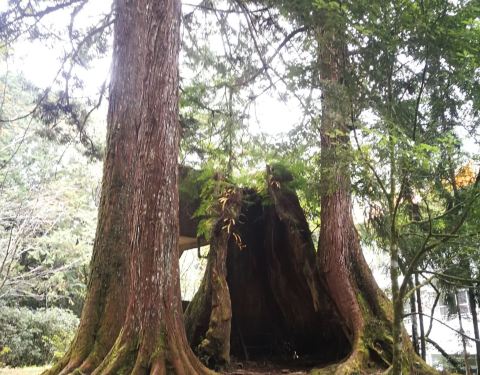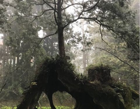在森林小火车邵平站到神木站之间徒步看到美景,巨木耸立有800至千年的红桧树,粗状的树根无不彰显着树龄,更有显示生命力三代神木