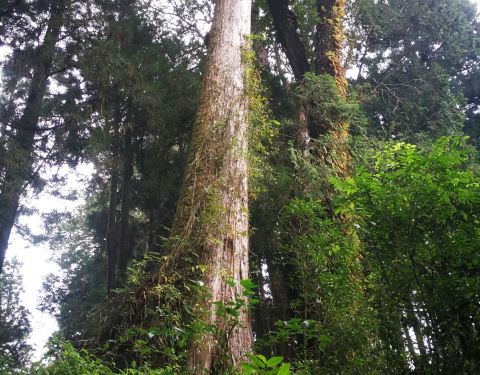 在森林小火车邵平站到神木站之间徒步看到美景,巨木耸立有800至千年的红桧树,粗状的树根无不彰显着树龄