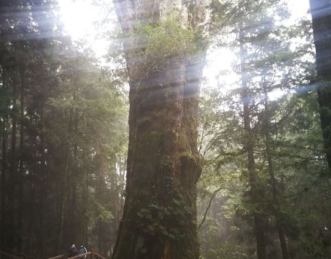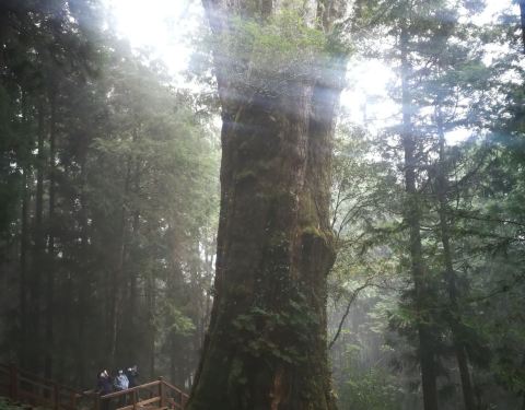 木质栈道蜿蜒于红桧巨木森林中,可以观赏阿里山出名的三千年神树。