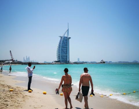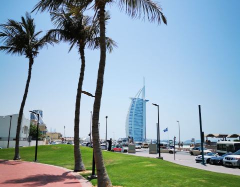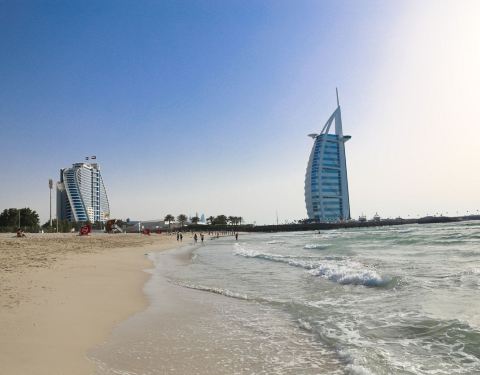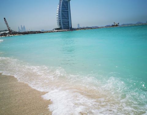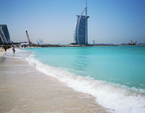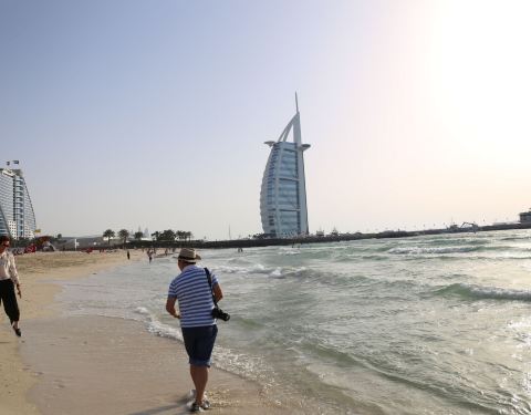 欣赏帆船酒店的绝佳之地,在海滩上拍摄一张与帆船酒店的趣味借位照吧。