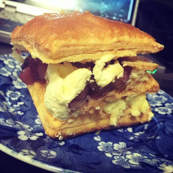 苹果版的对我来说有些太甜,我最喜欢的是蓝莓味的!在原有的苹果里加入蓝莓一起炖煮,给甜丝丝的苹果带来了一些清新一些酸,让strudel吃起来不会太腻!