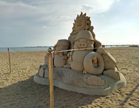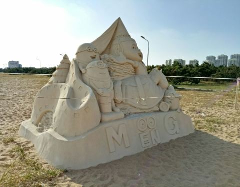 不用额外花钱,就坐在沙滩上,晒晒太阳,听听海浪拍打岸上的声音,看看海水潮起潮落,看看沙雕体现的海阳小城的民俗文化。挺惬意的休闲日一晃就过去了。