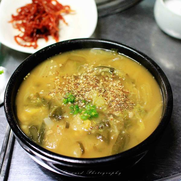 真是藏龙卧虎,从店外面看完全想象不到店里会是这样子的。我去的时候吃的是泥鳅汤,就简单说下【相遇】因为晚上要去大陵苑和瞻星台附近去看夜景,所以就在去的途中选了一家小店,本想简单吃个饭就继续赶路,没想到进了个如此文艺的地方。卖泥鳅汤的大妈和艺术品收藏家的合体你能想象出来咩?【店内装饰】 店里面有很多古玩和字画,东医宝鉴作者像,留声机,各种字画,居然还有水时钟!话说我们可是来吃饭的类!【美食】在国内的时候我是比较少吃到泥鳅料理,所以来到韩国第一次吃的时候还蛮惊奇的。不过在吃过后变得越来越喜欢,汤里的蔬菜炖的很烂,很容易下肚。泥鳅都是剁成碎末的,完全看不到的,害怕的童鞋也不过担心滴。【吃法】泥鳅汤的正确吃饭:依次适量辣椒末,蒜末,最后撒上肉桂粉和椒盐就可以开始啦。如果拿捏不好量的话,可以先少放一些,觉得味道不够可以再继续加。【营养价值】泥鳅所含脂肪成分较低,胆固醇更少,属高蛋白低脂肪食品,且含一种类似廿碳戊烯酸的不饱和脂肪酸,有利于人体抗血管衰老,故有益于老年人及心血管病人。总之就是很补啦。特别是上了年纪的人都很喜欢吃这个滴哟。【结算】需要提醒一下的是这家是不能刷卡的,所以请提前准备好现金。如果需要发票的话,直接跟店家说就好,店家会给你手写发票滴。