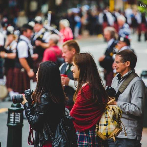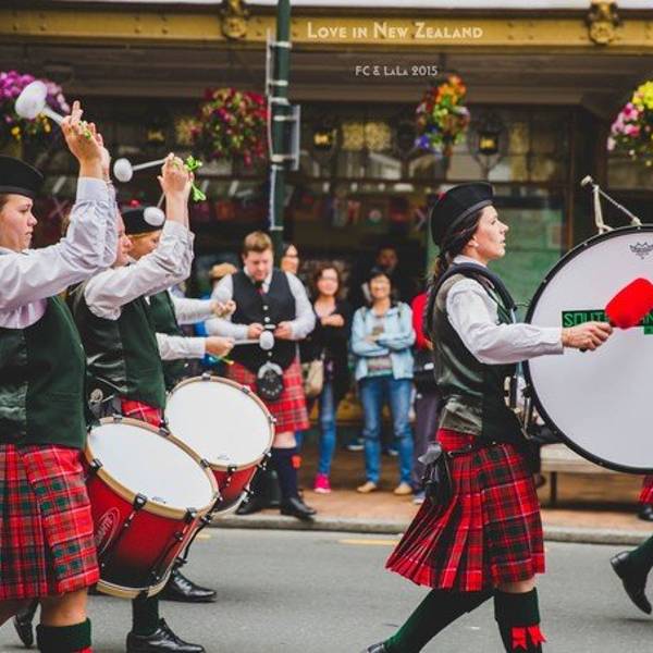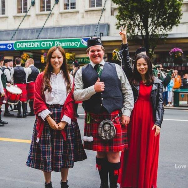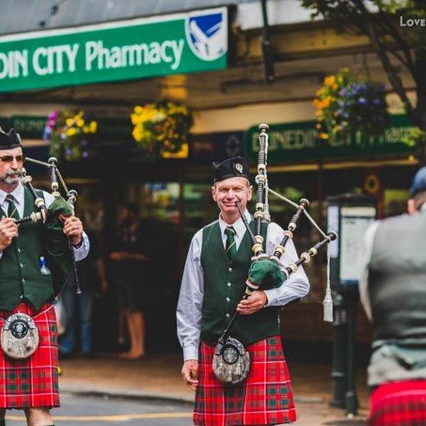 第一次亲眼见到这样的仪仗队,四个人居然呆呆地看了40分钟。整个但尼丁街区充满了各种苏格兰调调……我们听到了苏格兰风笛的声音,八角广场附近热闹起来了。