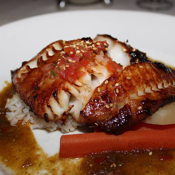 Roy’s Waikoloa Bar & Grill家夏威夷式的味增鲳鱼,有点辣椒与番茄酱汁混合的味道,喷香的煎鱼混合着焦糖,将这一道味增鲳鱼做出别致的风味。而在鱼的旁边,配着一份米饭,它同时也吸收了鱼及汤汁里的丰富营养。