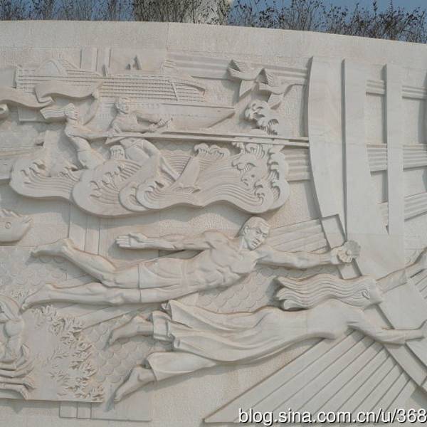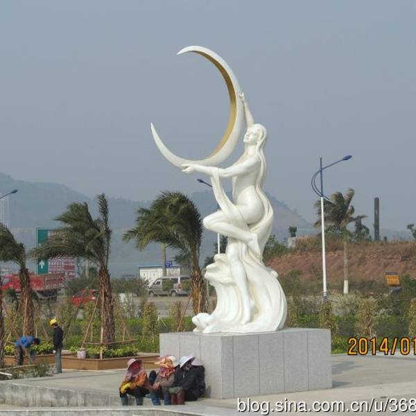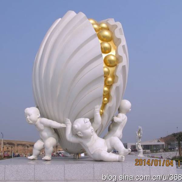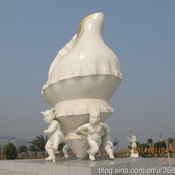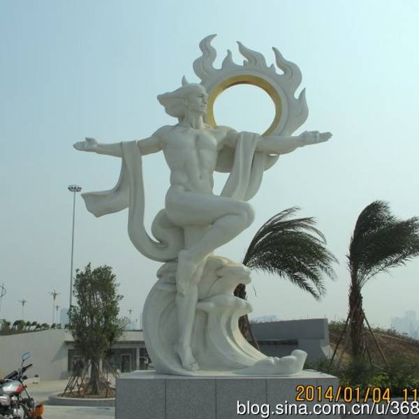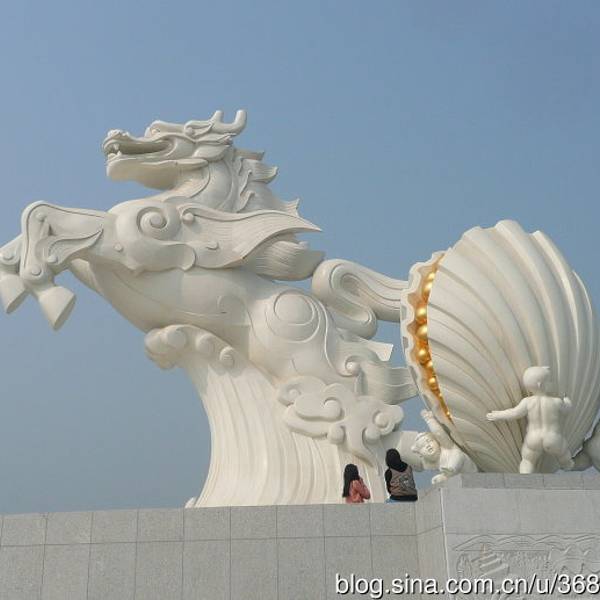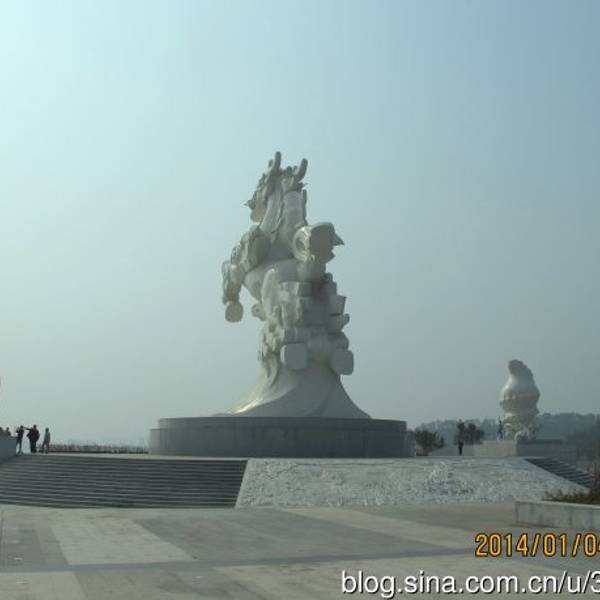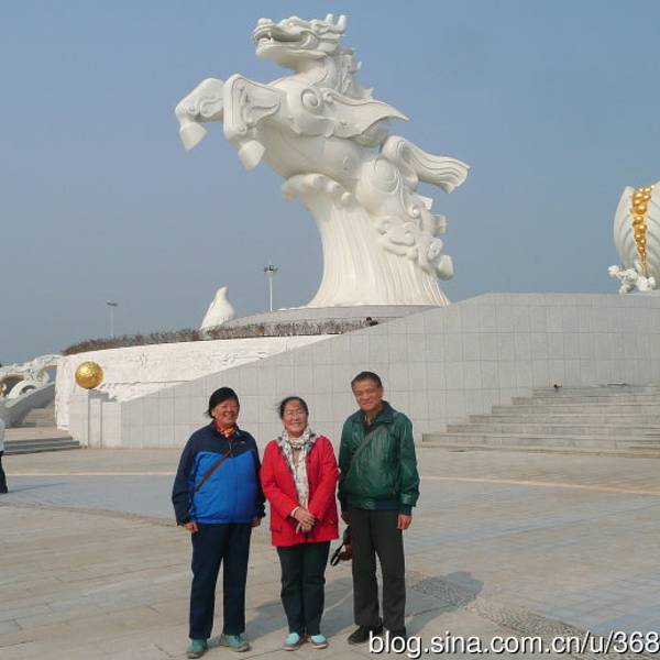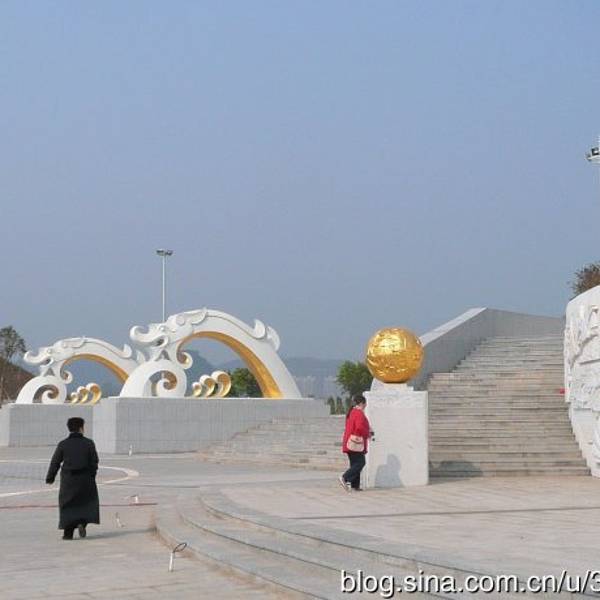这是这次广西游和表妹的唯一合影。后面广场两侧的男女青年雕塑,代表着日月同辉。中心主雕好像是龙头飞马身