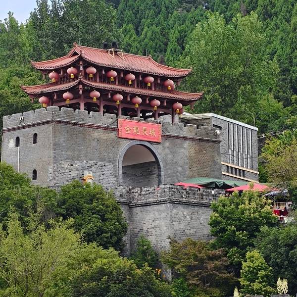 金龙长城位于四川省成都市龙泉驿区洛带镇金龙湖风景区,毗邻国家4A级旅游景区洛带古镇,距成都市区28公里,成渝高速龙泉站10公里,属成都1小时商圈,游玩方便。长城长1680米、高4米、宽3米,设有5个烽火台。登上长城顶极目远眺,山峦起伏、绿波翻滚,壮美之色尽收眼底。景区面积3.6平方公里,森林覆盖率78.8%,16个景点散布其间。其中自然景点3个、人文景点13个;属亚热带季风气候,年平均气温16--17℃,冬无严寒、夏无酷暑、气候宜人,水质、空气均达国家标准,全年适宜旅游。“一寺一湖一长城”构成了长城景区一道独特的风景线。 【一长城】垛口、射口、望口……一股盛气凌人的气势铺面而来,让你即刻想去征服这傲气的长城。长城内外风景宜人,两边全是郁郁葱葱的树木。在这崇山峻岭、蜿蜒曲折、层峦叠嶂的深山之中,一条随着山峦起伏的长城之道蜿蜒曲折地直通那山峰之颠。 “春有百花秋有月,夏有凉风冬有雪”是金龙长城四季风光的真实写照。春天长城两侧繁花点点,生意盎然;秋夜烽火台上月色明净、天高云淡;夏日傍晚城墙边微风轻送,卷起花草的芬芳和幽凉;隆冬时节长城全线银装素裹,林间遍是玉树琼花。 初雨后的长城,空气沁凉清新,两侧云遮雾绕,站在烽火台上,看身边云卷云舒,心中更添几分禅意与清明。除却美不胜收的自然风光,金龙长城能够叩击人心的还有它浓郁的客家文化。看一看长城沿线客家人温暖质朴的笑容。