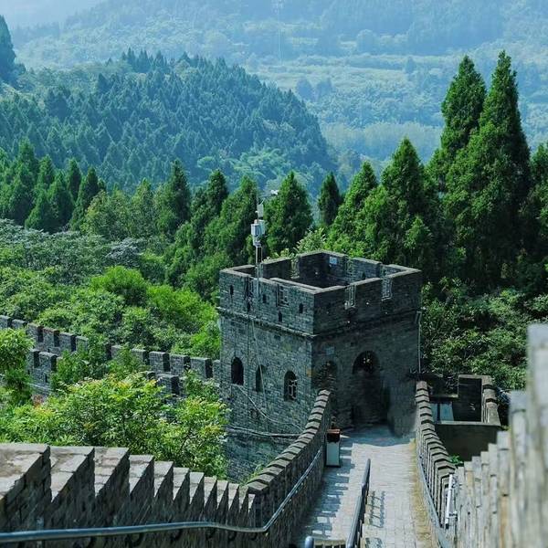 长城内外风景宜人,两边全是郁郁葱葱的树木。在这崇山峻岭、蜿蜒曲折、层峦叠嶂的深山之中,一条随着山峦起伏的长城之道蜿蜒曲折地直通那山峰之颠。初雨后的长城,空气沁凉清新,两侧云遮雾绕,站在烽火台上,看身边云卷云舒,心中更添几分禅意与清明。在烽火台附近也很适合拍照,虽没有真长城的气势磅礴,但是人少,而且仿造的还原度也不错,出片也是比较好出的。