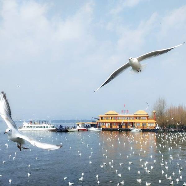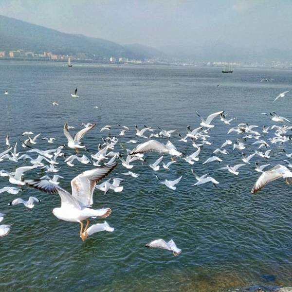 来自游记游览昆明海埂大坝,近距离接触海鸥