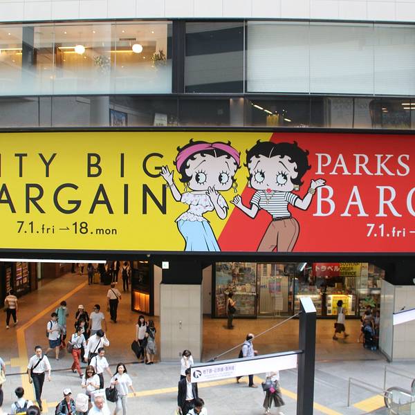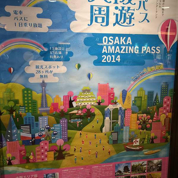 第一件事就是先到难波站买上大阪周游券,这样两天的行程门票交通就都解决了。其实很傻的是心斋桥的游客服务中心就可以买,但是我不知道为什么一心就要去难波买,所以一定要认真看好网站上的说明啊。坐地铁到难波站后步行到南海难波站,因为难波站实在是太大了,在里面差点迷路。一路上不停问穿着制服的人tourist information centre在哪里,最后也是让我找到了。 路上好多商店还没有开门,卷帘门上的图画以及招牌都是复古风。