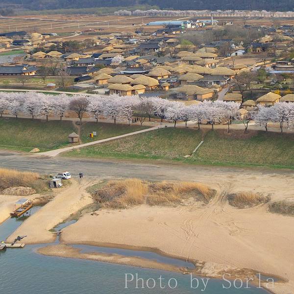 是安东比较有名的一条大河,河对面的山上有观景栈道,时间充足的话可以到对面山上,俯瞰整个河回村,...“百年古村落,假面河回村”河回村位于韩国庆尚北道安东市,是丰山柳氏家族600多年的集中居住村,因向南的洛东江呈‘S’形绕村后改向从东北流出,取‘河回于此’之义得来“河回村”一名。村内有建筑458栋,。村里...“百年古村落,假面河回村”河回村位于韩国庆尚北道安东市,是丰山柳氏家族600多年的集中居住村,因向南的洛东江呈‘S’形绕村后改向从东北流出,取‘河回于此’之义得来“河回村”一名。村内有建筑458栋,。村里既有朝鲜时期贵族住的瓦房,也有庶民、佣人住的草房,因此有‘活的朝鲜建筑博物馆’之称。河回村是韩国第122号重要民俗资料,村中有韩国第121号国宝河回假面、第132号国宝《惩毙录》及多个重要有形、无形文化遗产。2010年7月31日,安东河回村与庆州良洞村以“韩国历史村落”的名义被评为世界文化遗产。河回村里面的很多建筑都有一定的历史,建议请一个讲解或者提前做好功课,历史性的文化遗产如果只是走马观花的话,收货了了;沿着村子里的路向前行是洛东江,是安东比较有名的一条大河,河对面的山上有观景栈道,时间充足的话可以到对面山上,俯瞰整个河回村,十分壮阔!tip:1.河回村是安东市最有代表性的景点,由安东市搭乘公共汽车,约40分钟即可抵达。