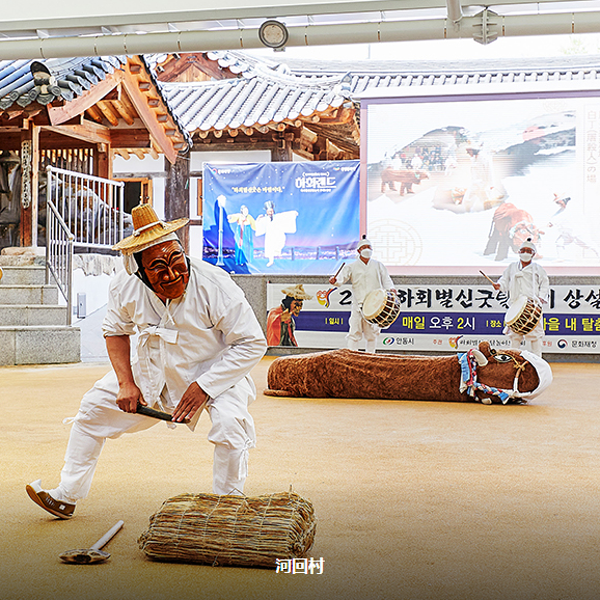 ※ 河回假面剧常设演出:1~2月 周六•周日下午2点~3点 (每周两次), 3~12月每周周二, 三, 四, 五, 六, 周日 (每周六次) 法定节假日下午2点~3点