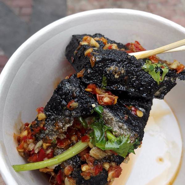 “坡子街三大名吃”之黑色经典臭豆腐来啦!