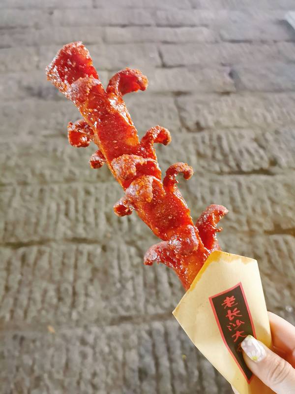 大香肠,也是长沙特色小吃之一,足足有普通香肠的两个长,事先切开再炸好,让里面也充分熟透,每一口都是鲜嫩多汁。虽然是游客店,但时整体价格不算太贵,一份臭豆腐十块出头,可以接受。环境就是小门店,没有座位,随买随走,边吃边逛。