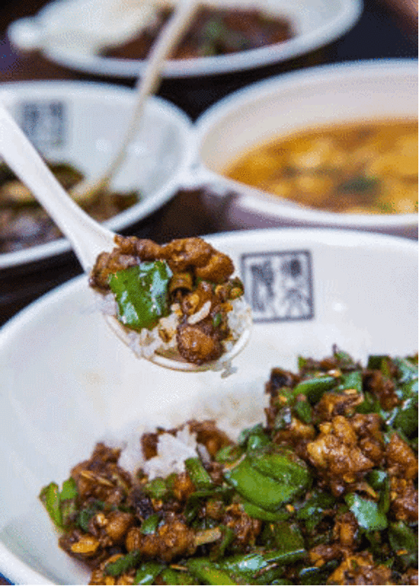 德天顺盖码饭——米饭是用蒸笼蒸的,加上湘菜的辛辣味。被戏称为“长沙盖码饭界的爱马仕”。,相比老店一贯的重口作风,口味上应该作了些调整,没有其他湘菜辣。#特色小吃#