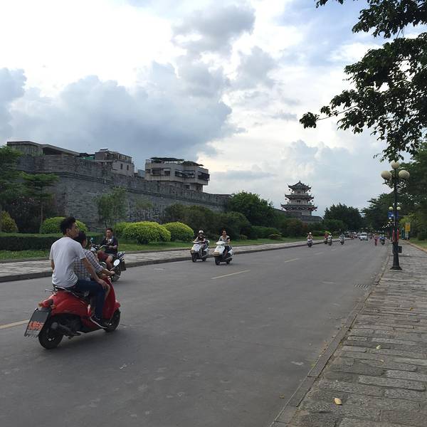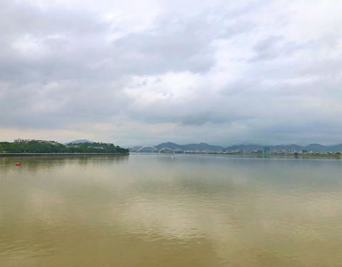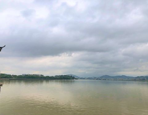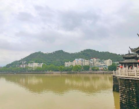 在潮州古城看韩江。 从汕头出发来潮州啦~本来早上还是阴阴的雨天,没想到到了潮州不下雨了,还出了点太阳,但云层依然很厚。 潮州的天气真的很“潮”!潮湿到不行~ 无边的韩江放眼望去还是很赏心悦目,天气好的时候一定很美吧!