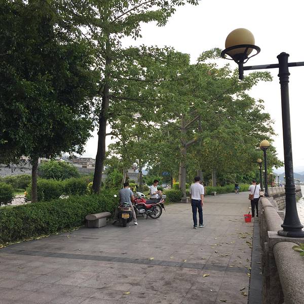 韩江是潮州这边的母亲河,由于这边的航运还有说其他的一些船运并不是特别的发达,所以水质上面保存的比较的好,看上去都是绿色的。 但是,虽然有人在这里游泳。近岸的地方还是有比较的多污渍。 晚上这边会开灯挺...