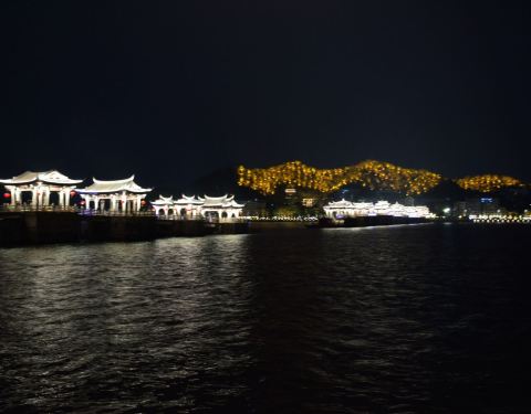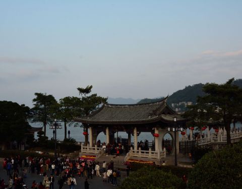 韩江自古已是潮州的一条主要河道,两边被广济桥连贯起来,有一边是挨近广济楼和老城区。江两边都有长廊供游人散步,风景也十分秀丽。