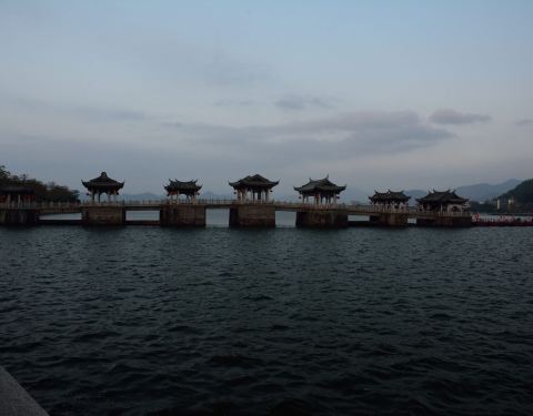 江两边都有长廊供游人散步,风景也十分秀丽韩江自古已是潮州的一条主要河道,两边被广济桥连贯起来,有一边是挨近广济楼和老城区。江两边都有长廊供游人散步,风景也十分秀丽。