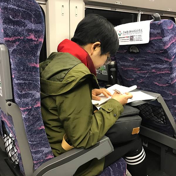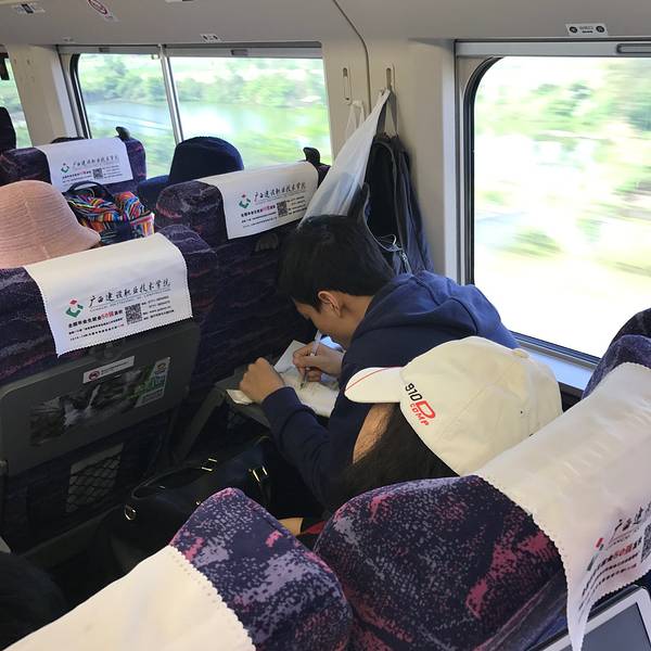 飞机9点40多到南宁机场,因为第2天坐动车,所以直奔高铁站。这是在去北海的动车上,偶遇两个边坐车边做题的小朋友,厉害啦,祖国的下一代。我们在开往北海的动车上