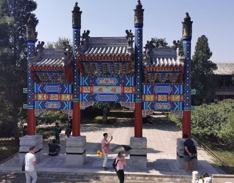 不错的景点从石拱桥下来快走到北宫门时回身一看,有一汉白玉石碑站在路边(如果从北宫门进来立刻映入眼帘)上面记载了苏州街的前世今生。不错的景点。