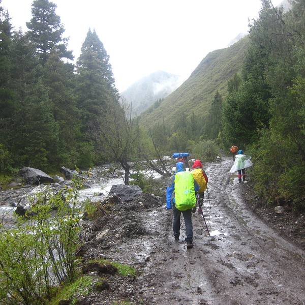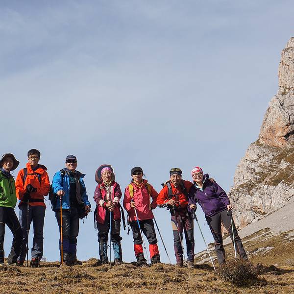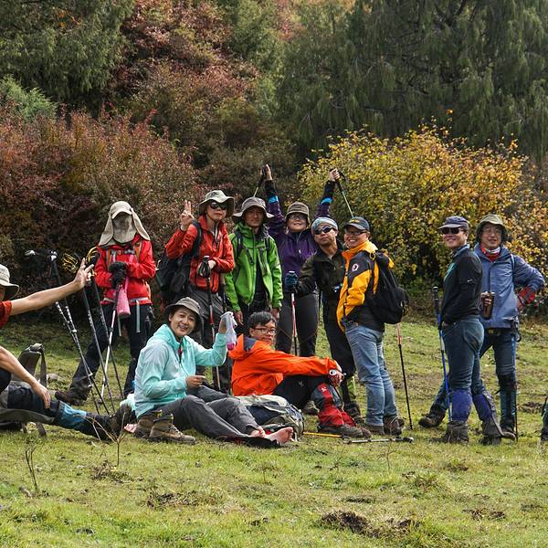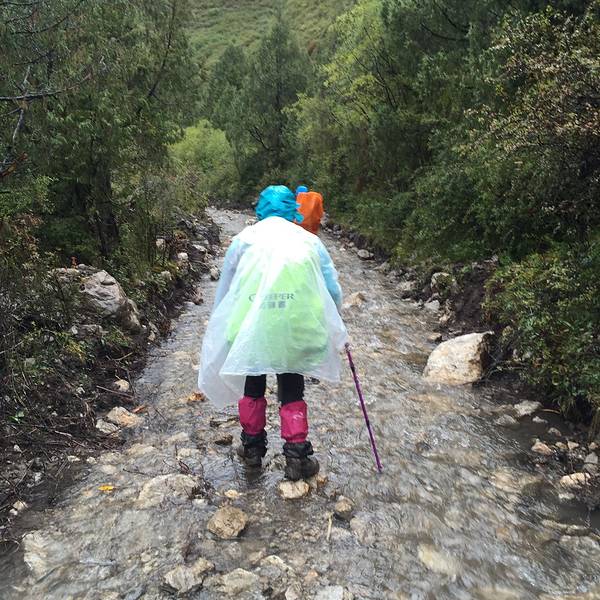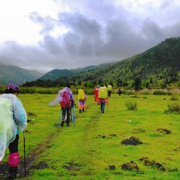 盛师兄,第一天高反得几乎没挺过去,竟然还是走完了全程。拿着长枪的海牛,体力不是一般的好啊!厉害新的一天,也是最后一天的徒步。先照了张最全的合影,然后踏上归路。天气依然不好,路上依然各种桥各种烂泥,可是这些已经不那么重要了。