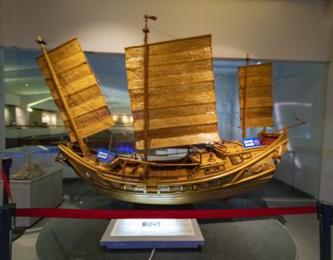 竹篾编制的桅帆,非常的厚重,到民国时期被淘汰。一些古代航海工具展示在泉州开元寺,里面有一间泉州湾古船陈列馆,这里收藏了一条泉州湾宋代古船,以及各时代的海船模型等文物。泉州湾宋代古船复原的模型,小小的木船模型,更方便我们近距离的去观察它的结构,木质的船身,木头桅,...在泉州开元寺,里面有一间泉州湾古船陈列馆,这里收藏了一条泉州湾宋代古船,以及各时代的海船模型等文物。泉州湾宋代古船复原的模型,小小的木船模型,更方便我们近距离的去观察它的结构,木质的船身,木头桅,篾编桅帆,宋代的时候原来用这么厚的材料来做帆的,据记录,篾帆已在民国时期已被淘汰,在这里我们能还能看到已经碳化的宋代的篾帆残片,相当之珍贵。竹篾编制的桅帆,非常的厚重,到民国时期被淘汰。馆里尺寸最大的藏品:1974年出土的后渚港宋船,残长24.2米,宽9.15米,分为13个水密隔仓,为中国自然科学史上最重要的发现之一。宋代海船的残骸发现,印证了泉州古代造船技术的高超和海外贸易的繁盛。藤帽这里有台机器,可以玩钱币互动游戏,在玩乐中学习了古钱币知识,值得小朋友来学习体验。竹篾桅帆的残片古代船舱的隔间一些古代航海工具展示 展开