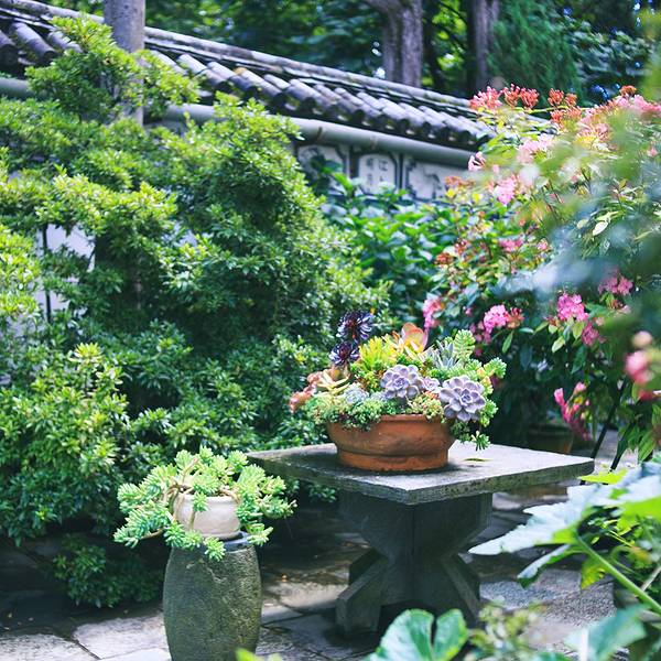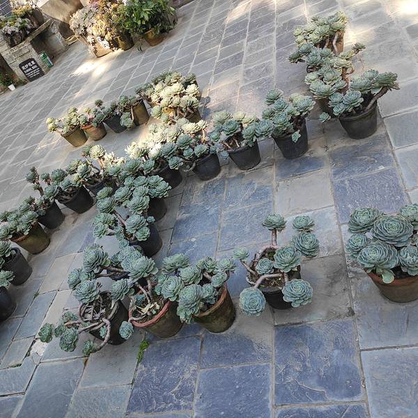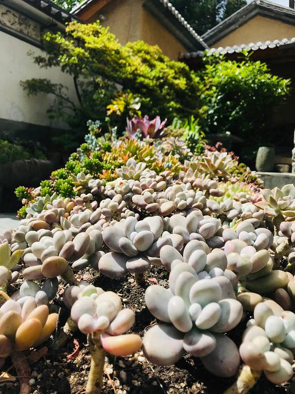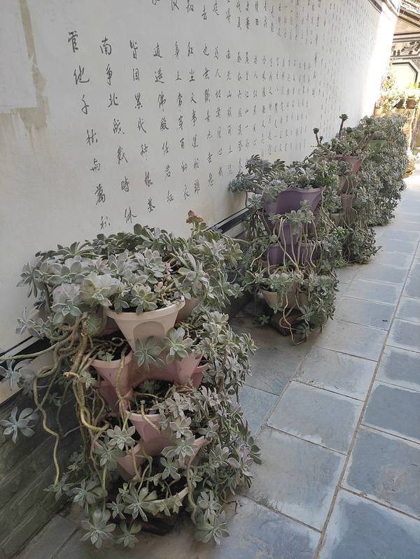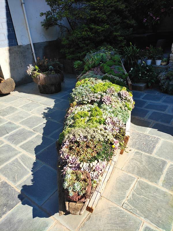 寺院内的植物以多肉为主,寺院前面是绣球花,后面则是两个大棚以及各式各样的月季花,花开的时候有点美得不像话了。多数游客只知道在院内欣赏多肉植物,而错过了“外面的繁华世界“,真是太可惜啦。在寂照庵寺院内,各种造型的多肉植物,布满了每个角落。每次去,都会有新发现,或许是一根老木头,或许是一个老的生活工具,也或许是一个漂亮的花盆,随意种上几株多肉植物就是一个新的世界,这里仿佛就成了多肉植物的天堂。