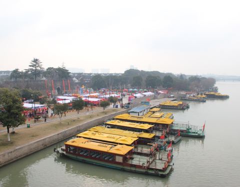 ...园,有红叶有游船有鲜花有护城河有古桥,春节期间美丽的梅花和桃花盛开,沿着护城河走可到达盘门景区