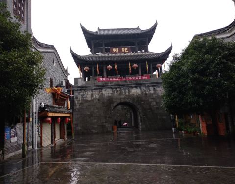 位于乾州古城南面,城门下即是万溶江。建筑有点类似于中原的瓮城结构,但艺术性更高于战略性,三座城门皆有城楼,挂有“乾州”牌匾的城楼却是朝城内而开,往外则书“济通”二字。月城内面积很小,更显四周城墙的...